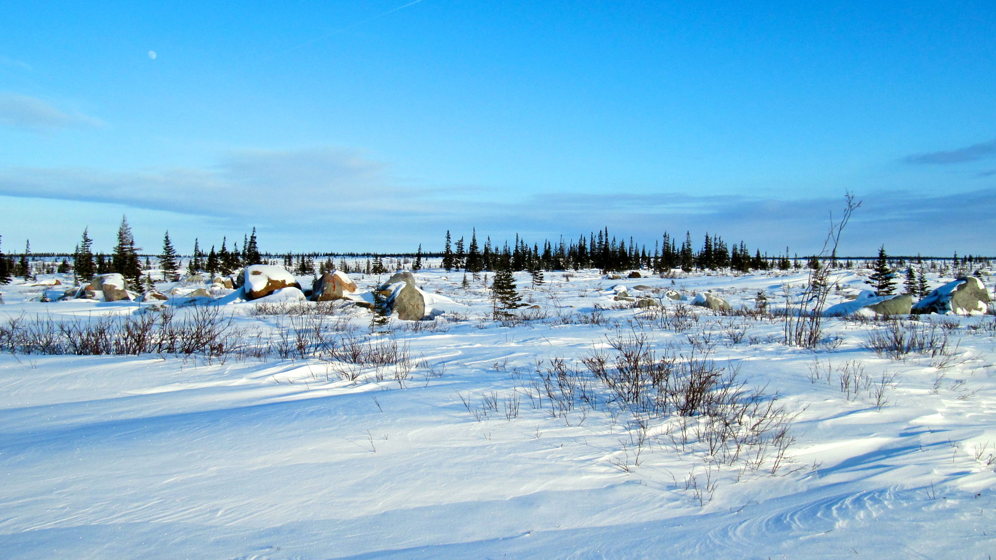 The flight in was better than expected. I wasn’t sure if a smaller plane would freak me out. It did not. Plus, flying at a lower altitude gives you a great chance to see some spectacular landscapes. The first thing I noticed as we approached Churchill was that the trees were casting very long shadows. You know you are pretty far north when you see shadows like that at midday! Oh, and the trees only have branches on three sides since the wind is so strong. They would make perfect space-saver Christmas trees!