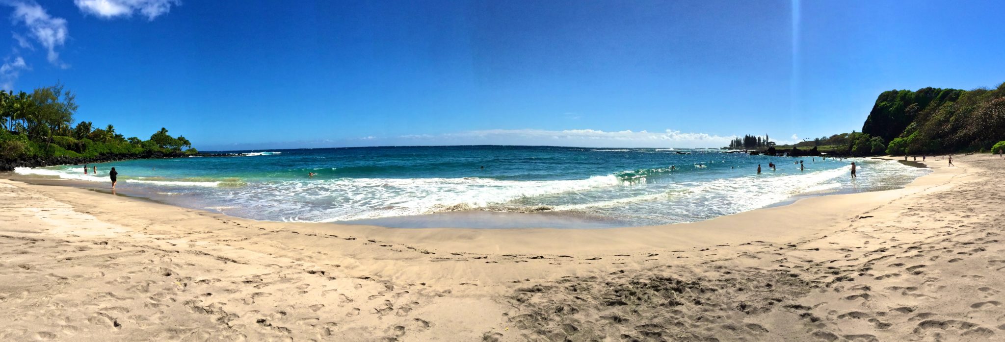 This time we stopped at the thumping Twin Falls, the eerily quiet bamboo forest, the uniquely striped rainbow eucalyptus trees, the banana bread mecca that is the Ke’eanae Peninsula, the pools of O’heo (more like No-H20-oh since they were mostly dried up), and the scorching hot sands of Hamoa beach.
