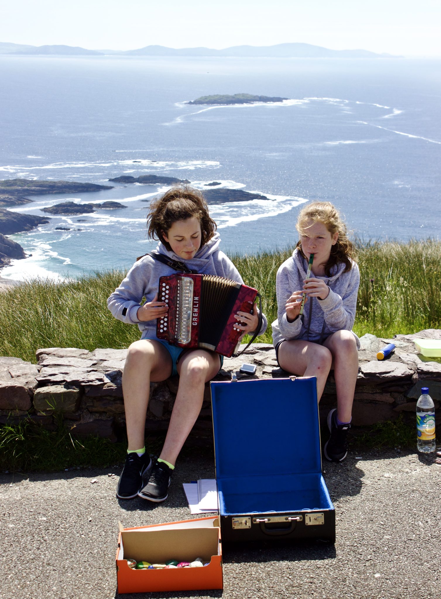 What a view! The Coomatloukane pull-off is a lovely spot of light blues and washed out greens. The water shimmered like diamonds, while those rosy-cheeked Irish lasses played and smiled and made the whole experience delightful.