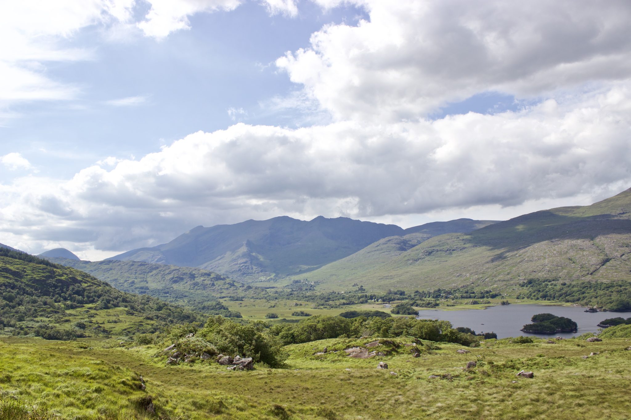 This is Killarney National Park, the jewel in County Kerry’s crown. It was the first national park in Ireland, designated a UNESCO site and holds the largest covering of native forest remaining in the country. The afternoon light shining through the clouds gave extra depth to those valley views.