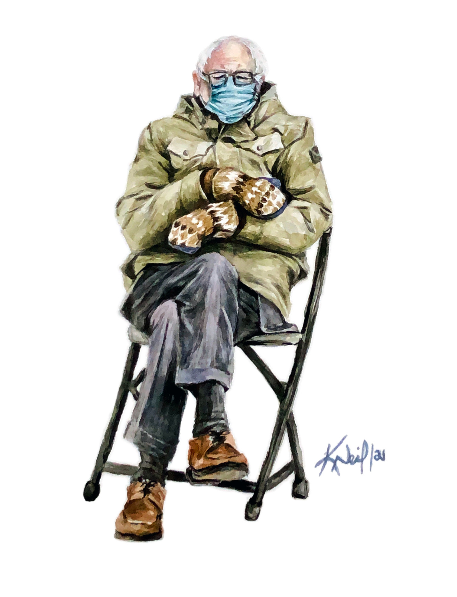 I couldn’t resist painting this one, for obvious MEME-sons. Bernie’s vibe during the inauguration had us all obsessed.
